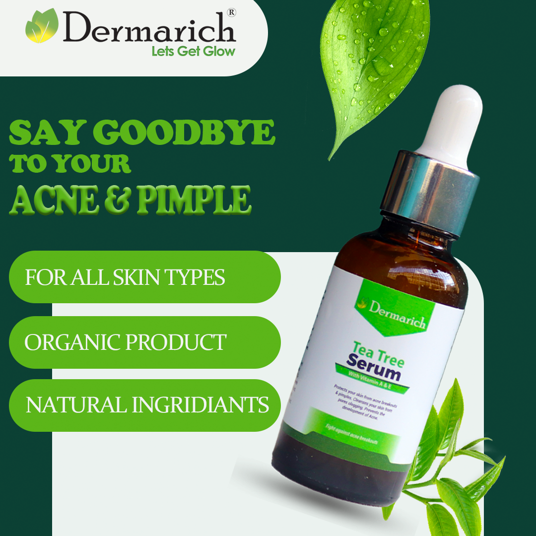 Achieve clear, glowing skin with Dermarich's Tea Tree Serum, a lightweight yet powerful formula infused with 2% Tea Tree Oil, specifically designed to target blemishes, acne, and uneven skin tone. This serum works wonders for oily and acne-prone skin by soothing inflammation, controlling excess oil, and promoting a refreshed complexion.